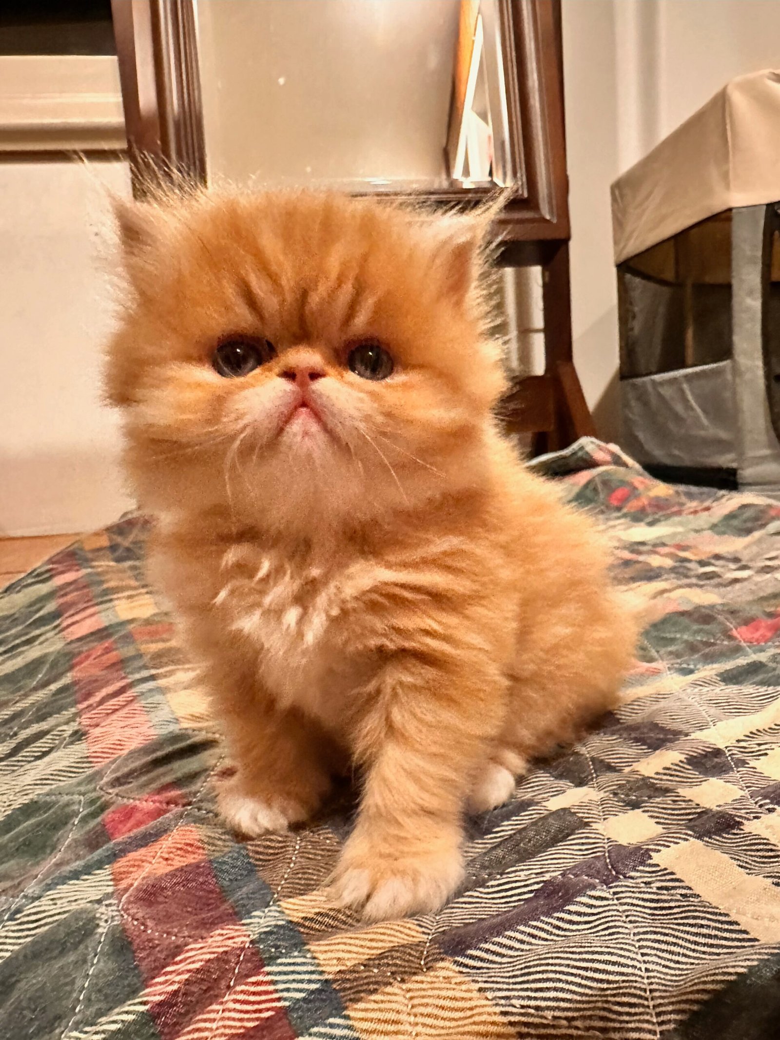 Frankie is our Red Tabby female. Only one in five Red Tabbies are female… and she is an extrodinary girl all around. She has beautiful features and loves giving kisses.