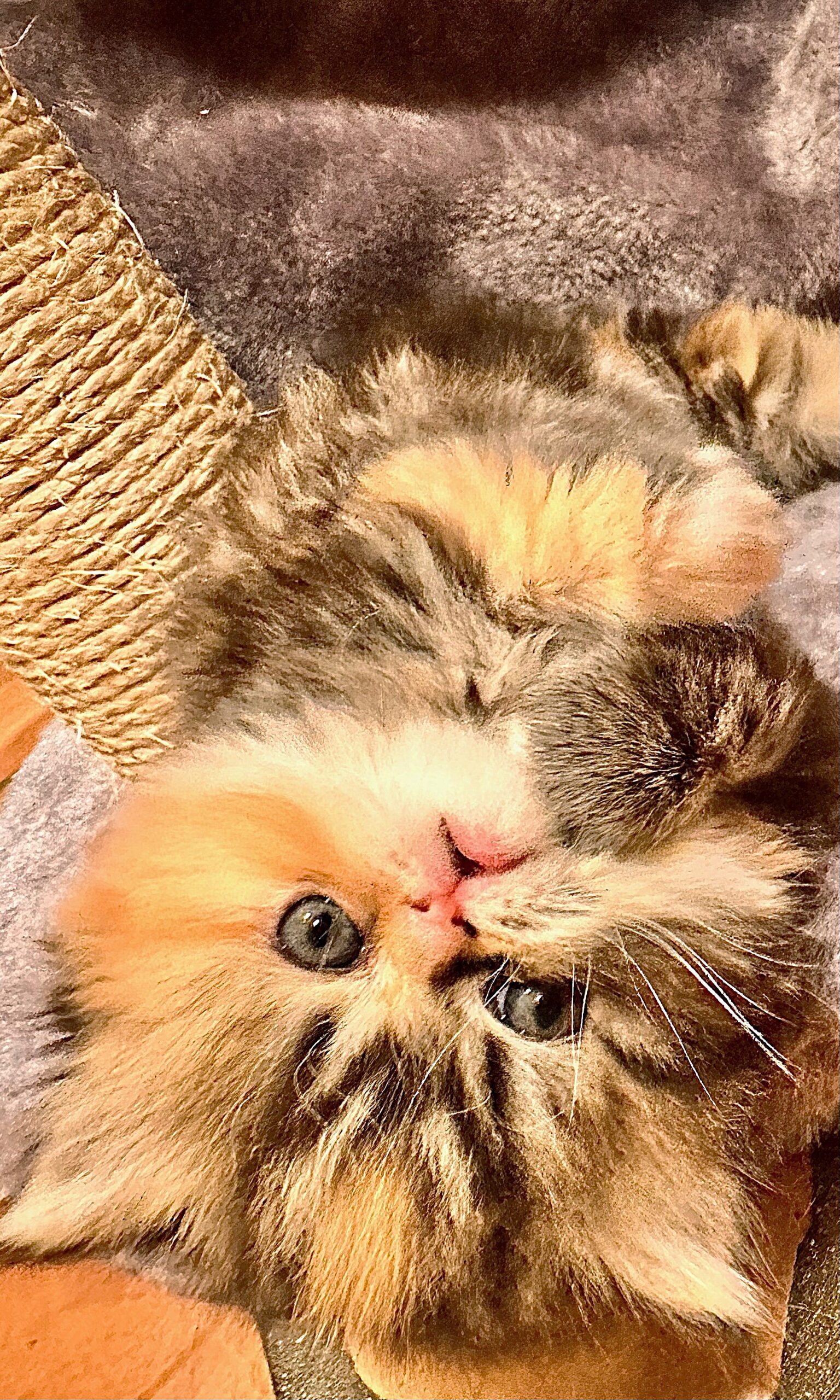 Our little Lover-Boy… Brutus is the big quite type. He is a Silver Tabby. He loves to to have his belly tickled and wants to be close… aways. He is gentle and playful.and will climb up my leg looking for affection.