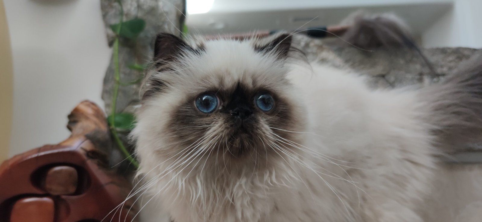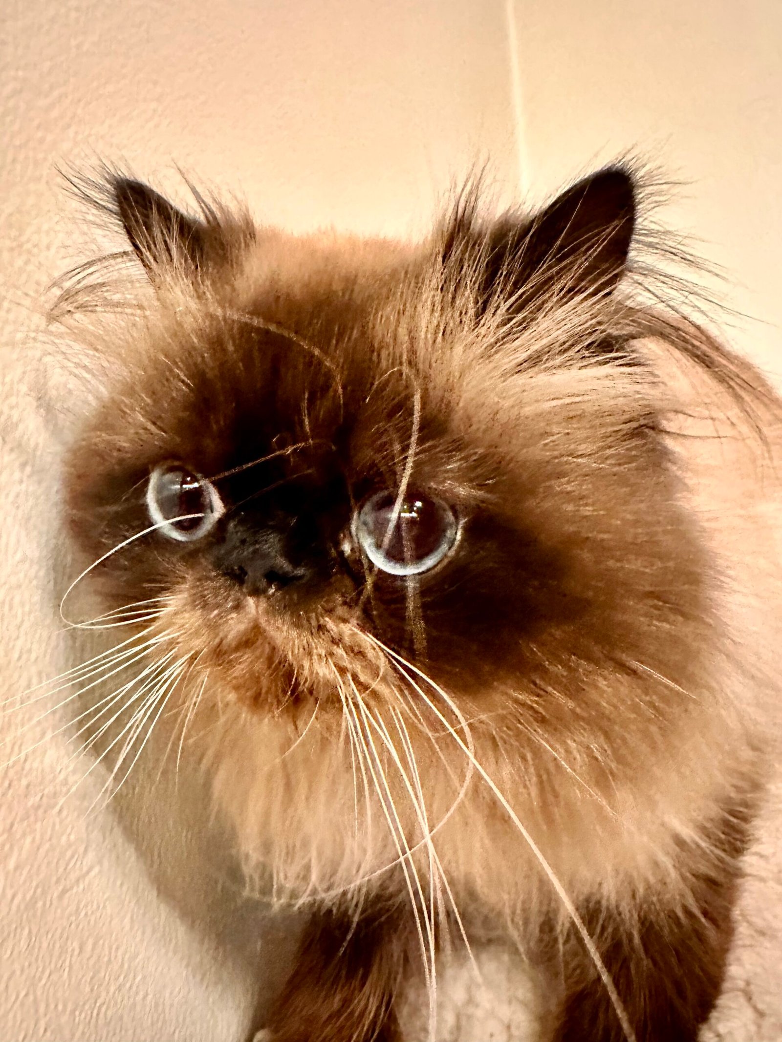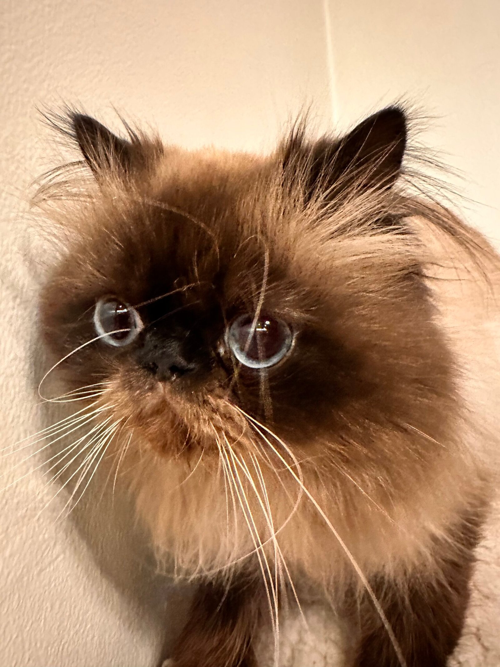 King Ewok is a CFA Certified Seal Point Himalayan Persian with beautiful markings and Deep Blue eyes.
